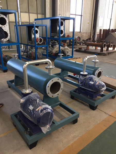 電加熱導(dǎo)熱油爐是一種新型、安全、高效節(jié)能,低壓(常壓下或較低壓力)并能提供高溫?zé)崮艿奶胤N工業(yè)爐,以導(dǎo)熱油為熱載體,通過(guò)熱油泵使熱載體循環(huán),將熱量傳遞給用熱設(shè)備。 電加熱導(dǎo)熱油系統(tǒng)由防爆電加熱器、有機(jī)熱載體爐、換熱器(如有)、現(xiàn)場(chǎng)防爆操作箱、熱油泵、膨脹槽等組合成一個(gè)撬塊,用戶(hù)只僅需接入電源、介質(zhì)的進(jìn)出口管道及一些電氣接口即可使用。 對(duì)于電加熱導(dǎo)熱油鍋爐,熱量是由浸入導(dǎo)熱油的電加熱元件產(chǎn)生和傳輸?shù),以?dǎo)熱油為介質(zhì),利用循環(huán)泵,強(qiáng)制導(dǎo)熱油進(jìn)行液相循環(huán),將熱量傳遞給用一個(gè)或多種用熱設(shè)備,經(jīng)用熱設(shè)備卸載后,重新通過(guò)循環(huán)泵,回到加熱器,再吸收熱量,傳遞給用熱設(shè)備,如此周而復(fù)始,實(shí)現(xiàn)熱量的連續(xù)傳遞,使被加熱物體溫度升高,達(dá)到加熱的工藝要求.
